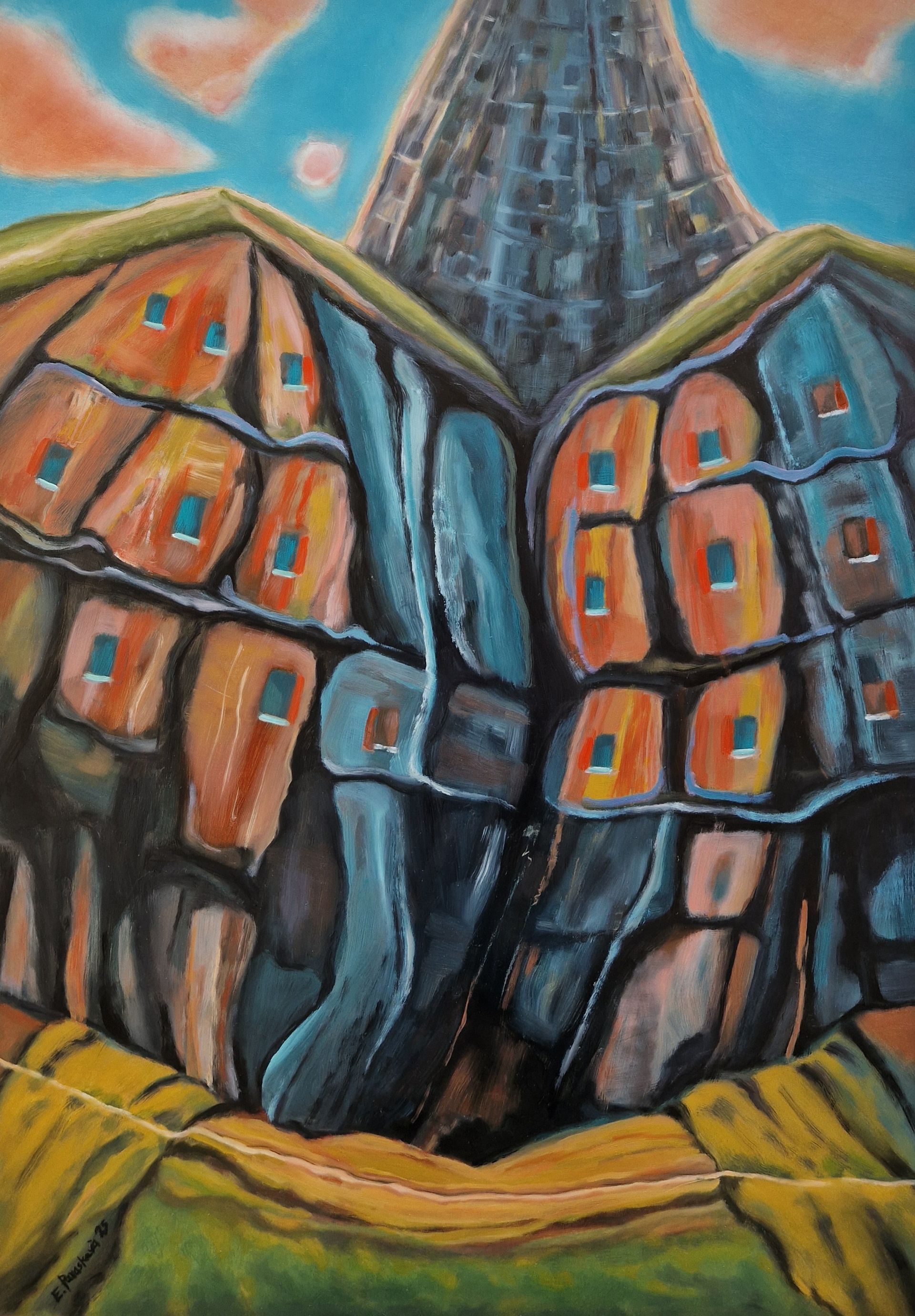 Bei den sieben Quellen 2023, 60x80cm, MDF auf Kieferholzrahmen