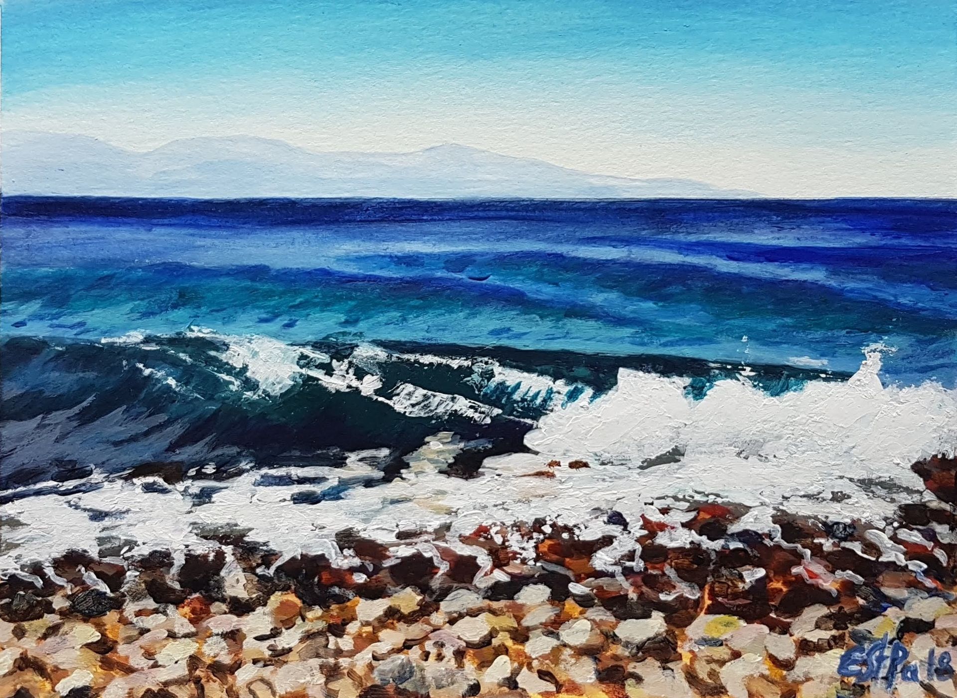 Die Wellen 2018, 58x75cm, Leinwand in weissem Schattenfugenrahmen