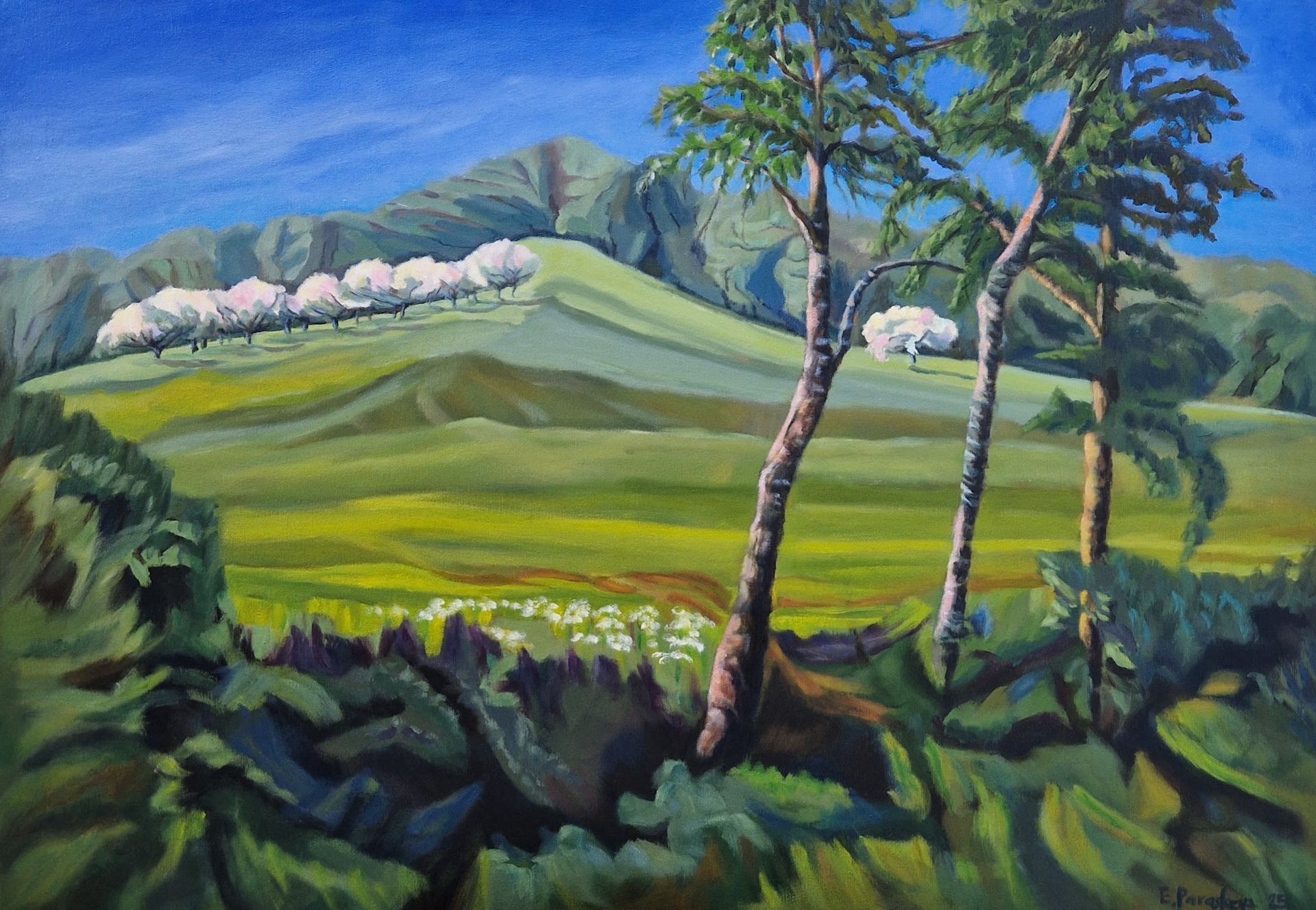 Frühling am Hang 2025, 70x100cm, Leinwand